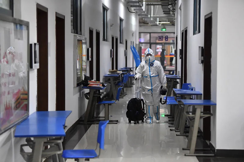 2021年12月25日,新華社陜西分社記者李華在西安外國語大學隔離考場采訪拍攝研究生考試。