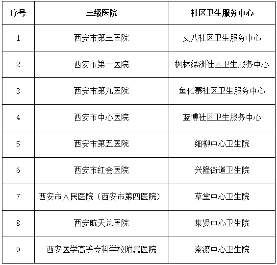 指定市屬三級(jí)醫(yī)院9家,對(duì)口支援高新區(qū)9個(gè)社區(qū)衛(wèi)生服務(wù)中心(或鄉(xiāng)鎮(zhèn)衛(wèi)生院,下同)(對(duì)口支援關(guān)系見(jiàn)附件),簽訂對(duì)口支援協(xié)議,下派內(nèi)科、外科、婦產(chǎn)科醫(yī)務(wù)人員駐點(diǎn)社區(qū)衛(wèi)生服務(wù)中心坐診,另外由西安市兒童醫(yī)院、西安市中醫(yī)醫(yī)院向丈八社區(qū)衛(wèi)生服務(wù)中心、楓林綠洲社區(qū)衛(wèi)生服務(wù)中心、魚(yú)化寨社區(qū)衛(wèi)生服務(wù)中心、藍(lán)博社區(qū)衛(wèi)生服務(wù)中心派中醫(yī)醫(yī)師和兒科醫(yī)師,確保社區(qū)衛(wèi)生服務(wù)中心能順利開(kāi)展基本診療工作。高新區(qū)要加強(qiáng)社區(qū)衛(wèi)生服務(wù)中心硬件建設(shè),配備必要的檢查、檢驗(yàn)設(shè)備,確保能夠完成基本醫(yī)療所必需的檢查和檢驗(yàn)項(xiàng)目。支援醫(yī)院與社區(qū)衛(wèi)生服務(wù)中心建立上下轉(zhuǎn)診關(guān)系,對(duì)超出社區(qū)衛(wèi)生服務(wù)中心診療能力的轉(zhuǎn)往上級(jí)醫(yī)院進(jìn)一步診治,支援醫(yī)院應(yīng)采取預(yù)約門(mén)診、綠色通道或預(yù)留床位等方式做好支持。