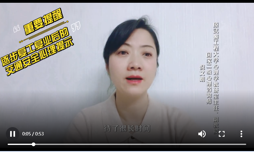 隨著西安復(fù)工復(fù)產(chǎn)的推進(jìn),“開車出門”成了恢復(fù)常態(tài)化防控之后,很多市民面臨的第一件事。今天(1月15日),西安交警邀請(qǐng)?jiān)渚こ檀髮W(xué)心理學(xué)教研室主任、副教授,國家二級(jí)心理咨詢師倪文娟,提醒駕駛員在家中狹小的空間內(nèi)長時(shí)間封閉后,如何保持安全出行心態(tài)。