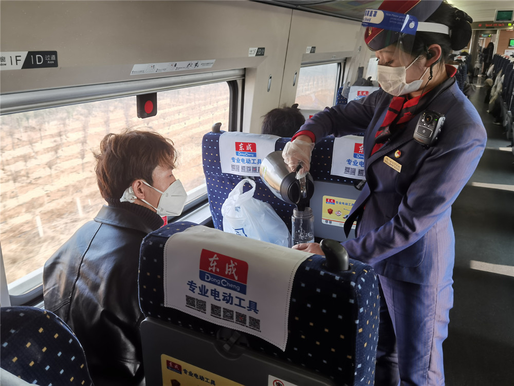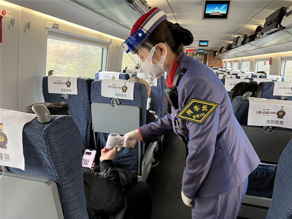 面對今年春運疫情防控形勢和大客流安全運輸壓力,全體高鐵乘務人員將嚴把安全關,加強設施設備檢修維護。主動做好疫情防控,加強車廂內消毒和衛(wèi)生清掃、為旅客提供安全衛(wèi)生的餐飲產品,加密列車公共部位消毒頻次、科學做好發(fā)熱旅客處置、加強旅客防護用品佩戴提醒等,用心為旅客服務,讓旅客平安健康出行。