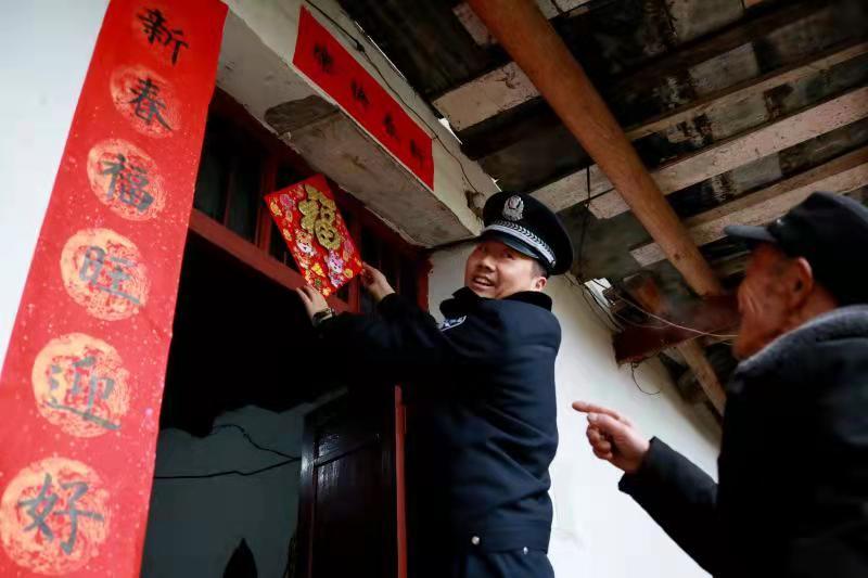 今年得知張有學(xué)的兒子、兒媳由于疫情原因可能不回家過年,家里就兩位80多歲的老人和孫女在家。在1月25日小年這天,王鵬提前給老人準備好了年貨,帶著民警來張有學(xué)家?guī)兔?。在張有學(xué)家里,王鵬和老人搭伙貼好了新年對聯(lián)、幫老人整理好柴火,所里的年輕民警也主動和小慧姐妹溝通學(xué)習(xí)情況,為她們的學(xué)習(xí)加油鼓勁。