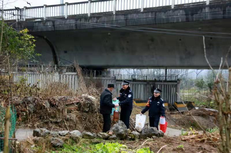 “說起來,這個親戚還是西成高鐵為我們牽的線。”在聊天中王鵬這樣說。原來,2016年12月西成高鐵開通前,為做好高鐵線路的調(diào)研和治安管控工作,安康鐵路警方組建了4支高鐵工作隊開展前期工作,王鵬被選派到寧強南站工作隊擔任隊長。在工作中,他得知離高鐵線不遠的寧強縣薛家壩村有位76歲的張有學(xué)老人,老人的兒子兒媳常年在廣東打工,他和老伴獨自照顧2個正上小學(xué)的孫女,每天接送2個孫女上下學(xué)都會路過高鐵橋下面的小路。由于張有學(xué)的家正好位于西成高鐵的落地區(qū)段附近,周邊經(jīng)常有孩童玩耍,治安防控任務(wù)艱巨。王鵬帶著民警經(jīng)常到張有學(xué)家走訪,還邀請張有學(xué)協(xié)助進行安全宣傳。一來二去,雙方結(jié)成了“親戚”。每次路過,張有學(xué)會邀請著民警到家喝水、吃飯,王鵬也盡力幫著老人做些家務(wù),輔導(dǎo)張有學(xué)孫女小慧姐妹倆的功課,這一幫就是6年。