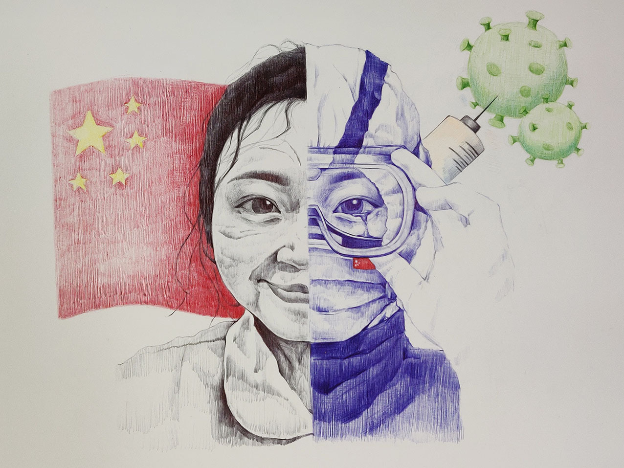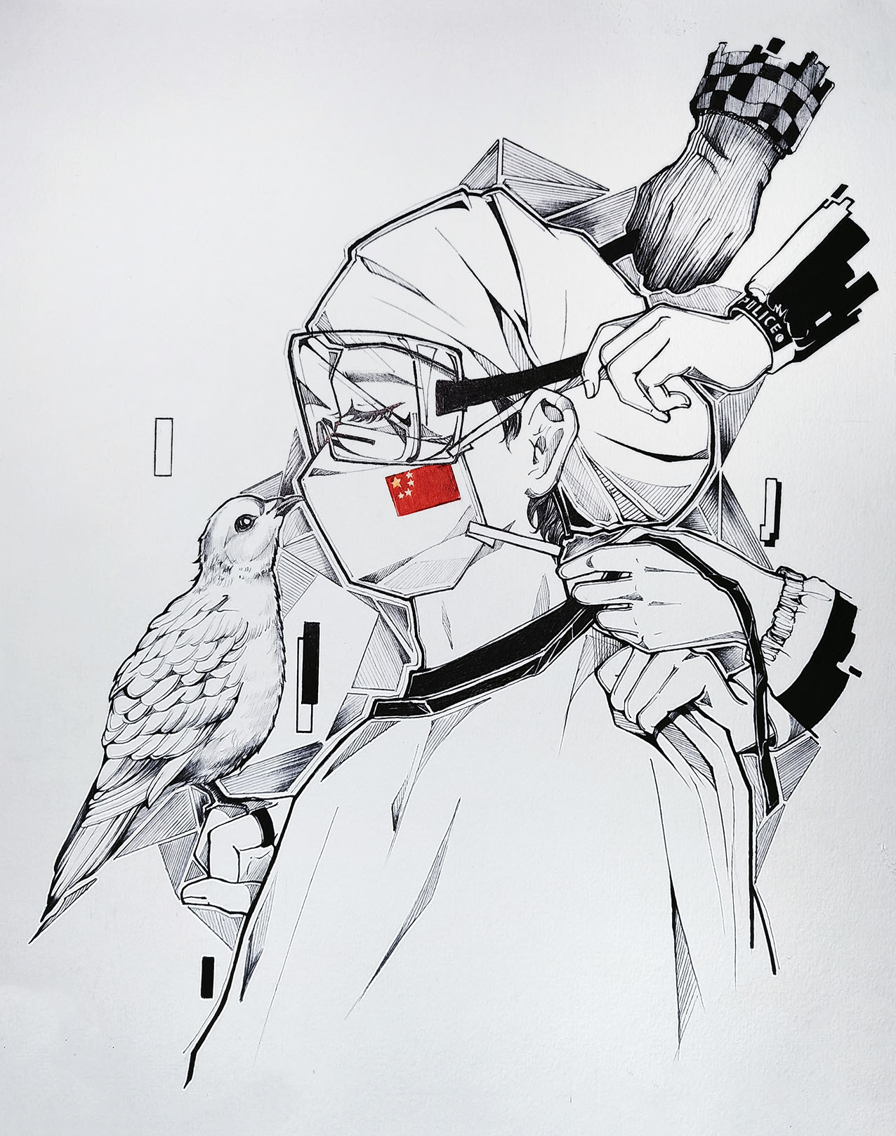 一幅幅插圖,展示、宣傳了疫情防控政策,同時也謳歌贊美了英勇戰(zhàn)斗在防疫一線的醫(yī)務(wù)工作者、各級志愿者和工作人員,為抗疫工作凝聚團結(jié)一心的精神防線。