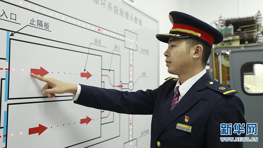 成為鐵路人是胡堅(jiān)一直以來的夢(mèng)想,2013年,90后的胡堅(jiān)來到中國(guó)鐵路昆明局集團(tuán)有限公司昆明機(jī)務(wù)段開始了“逐夢(mèng)之旅”。(新華網(wǎng) 范芳鈺/文 劉東/攝)