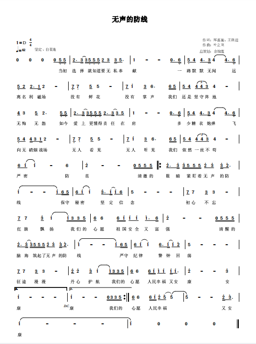 慶祝建黨百年獲獎(jiǎng)歌曲作品選集——《無(wú)聲的防線》詞曲。