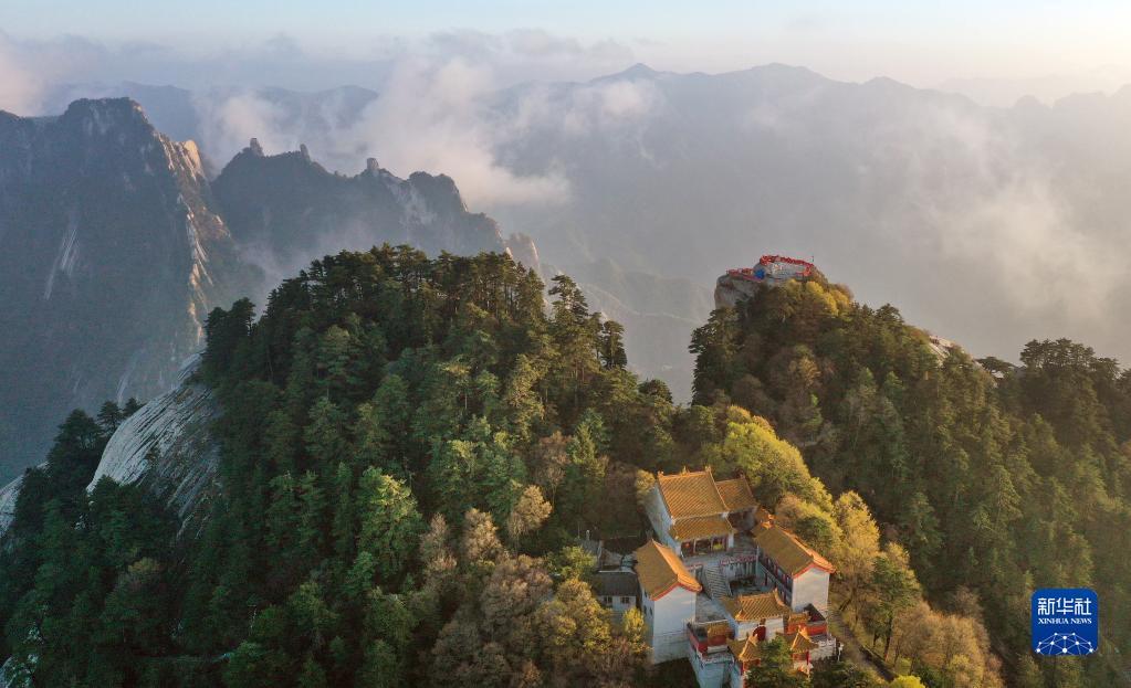 夕陽(yáng)下的華山(4月28日攝,無(wú)人機(jī)照片)。新華社記者陶明攝