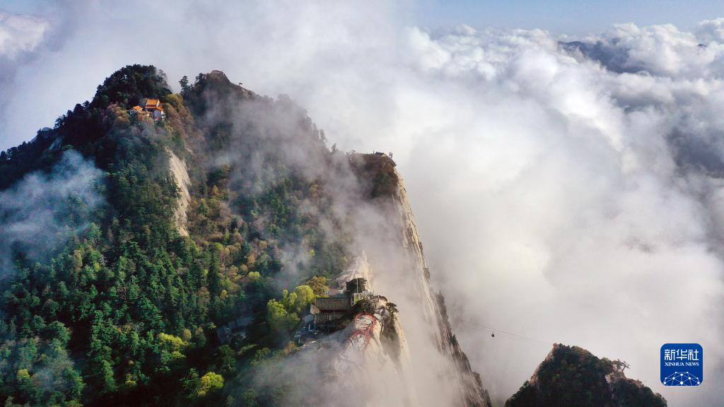 云霧中的華山南峰(4月28日攝,無(wú)人機(jī)照片)。新華社記者陶明攝