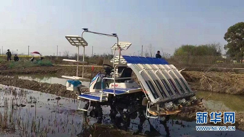圖為無人自動插秧機。新華網(wǎng)發(fā) 陳振亮攝