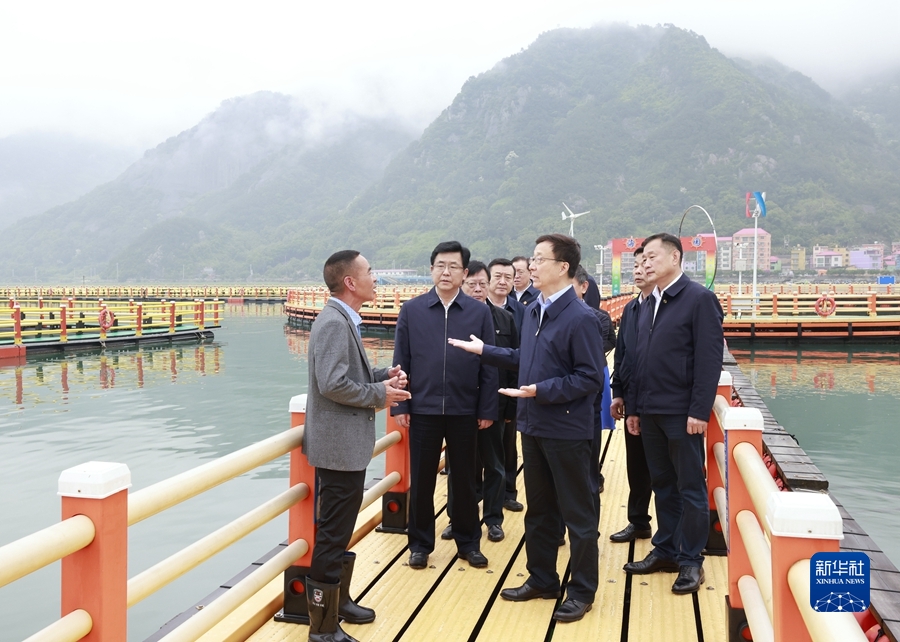 5月23日至24日,中共中央政治局常委、國(guó)務(wù)院副總理韓正在福建寧德、福州、漳州調(diào)研。這是5月23日,韓正在福安“藍(lán)海漁歌”海上綜合整治展示平臺(tái)調(diào)研。新華社記者 丁林 攝
