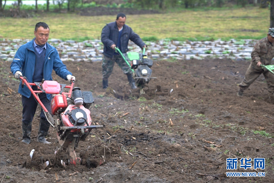 3月25日,冷水鎮(zhèn)玉龍村村民正在用農(nóng)機犁地,準備播種高山反季節(jié)蔬菜。新華網(wǎng) 耿駿宇 攝