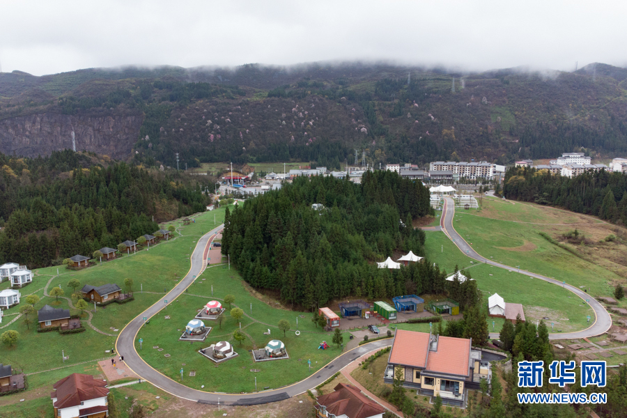 從空中航拍重慶高速冷水服務區(qū)生態(tài)旅游自駕營地。新華網(wǎng) 耿駿宇 攝
