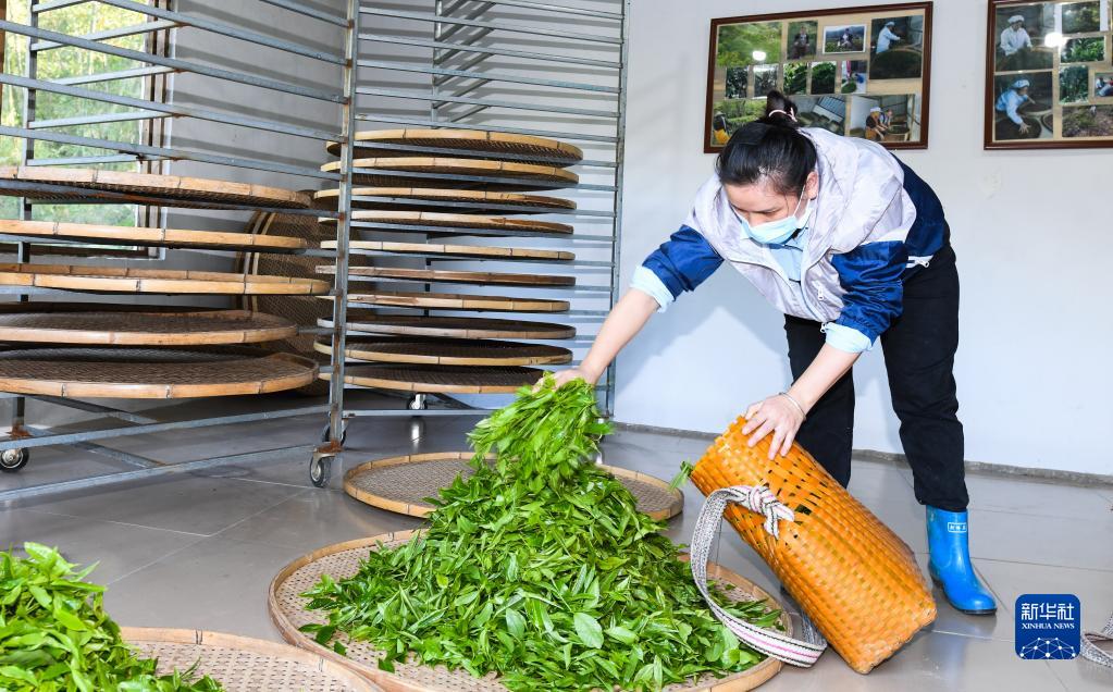 4月10日,在海南省五指山市水滿鄉(xiāng)毛納村,茶農(nóng)在手工茶坊內工作。新華社記者 楊冠宇 攝