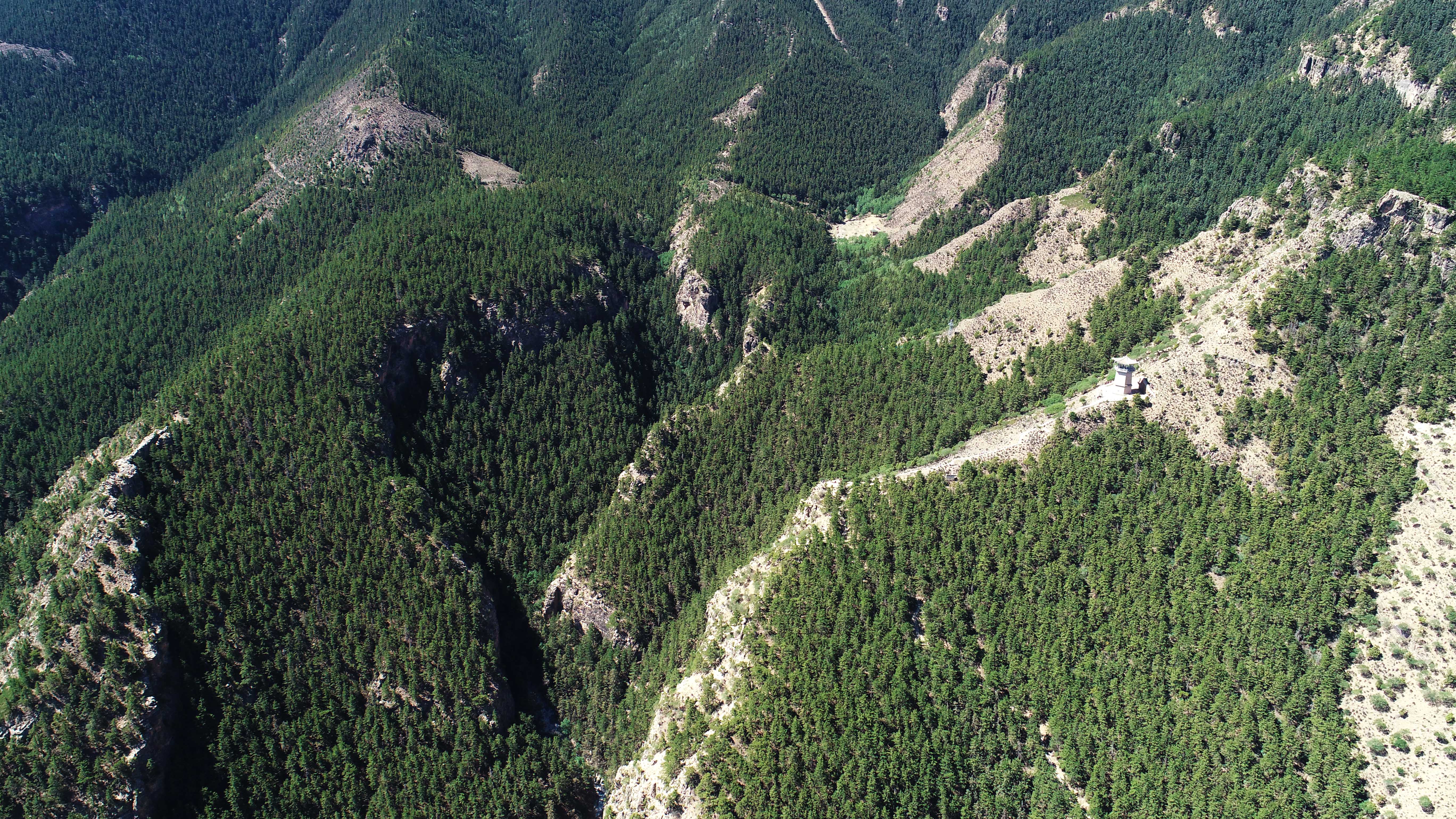這是綠意盎然的賀蘭山蘇峪口國(guó)家森林公園(無(wú)人機(jī)照片,6月14日攝)。新華社記者王鵬攝