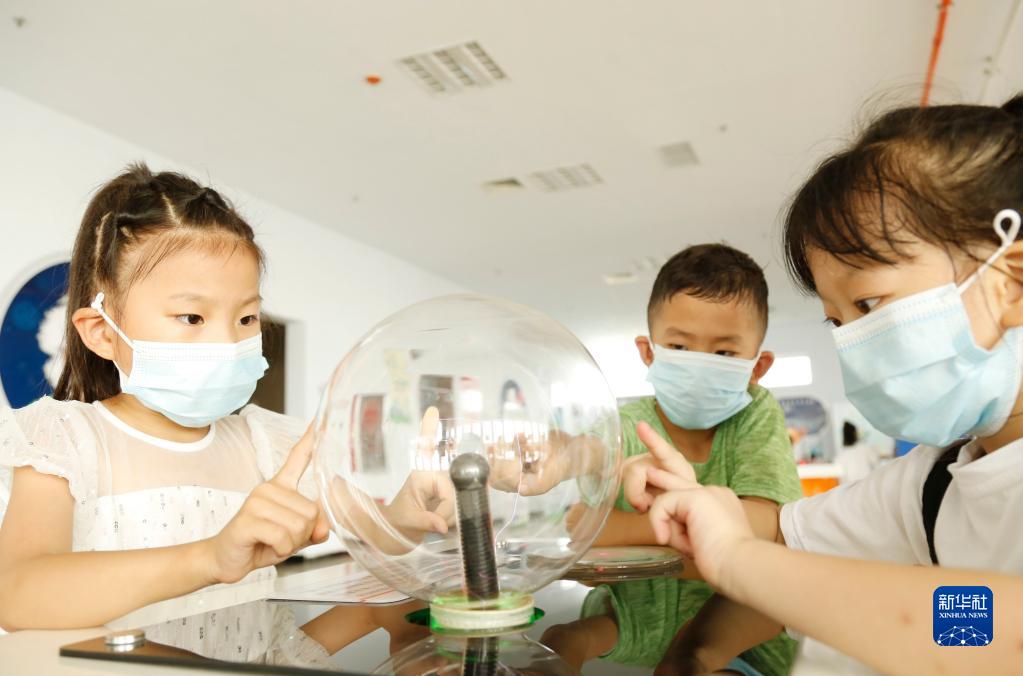 8月3日,在河北省邢臺市南和區(qū)科技館,賈宋鎮(zhèn)南師村的孩子們在學(xué)習(xí)科普知識。新華社發(fā)(張馳攝)
