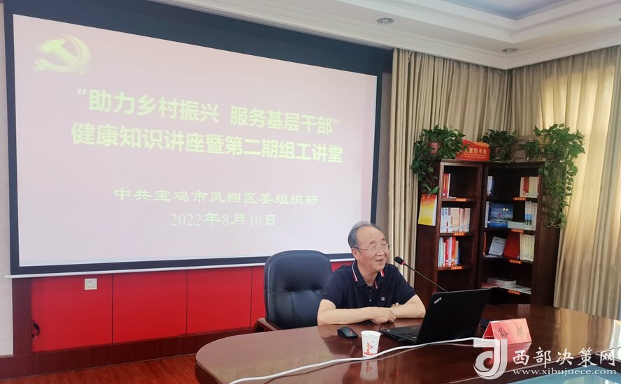 西部決策網(wǎng)訊 近日,九三學(xué)社寶雞市鳳翔區(qū)綜合支社醫(yī)學(xué)研究室,在鳳翔區(qū)委組織部開展“助力鄉(xiāng)村振興 服務(wù)基層干部”健康知識(shí)講座活動(dòng)。本次活動(dòng)以智慧黨建平臺(tái)視頻系統(tǒng)召開,鳳翔區(qū)委組織部為主會(huì)場,各鎮(zhèn)、村設(shè)分會(huì)場,各鎮(zhèn)機(jī)關(guān)干部、村干部,駐村工作隊(duì)第一書記、隊(duì)員,鳳翔區(qū)委組織部機(jī)關(guān)全體干部,共計(jì)600余人參加會(huì)議。