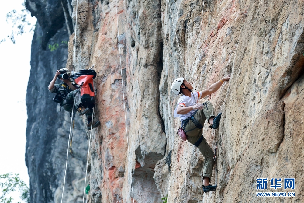 攀巖愛好者正在攀巖。新華網發(fā) 黃羽 攝
