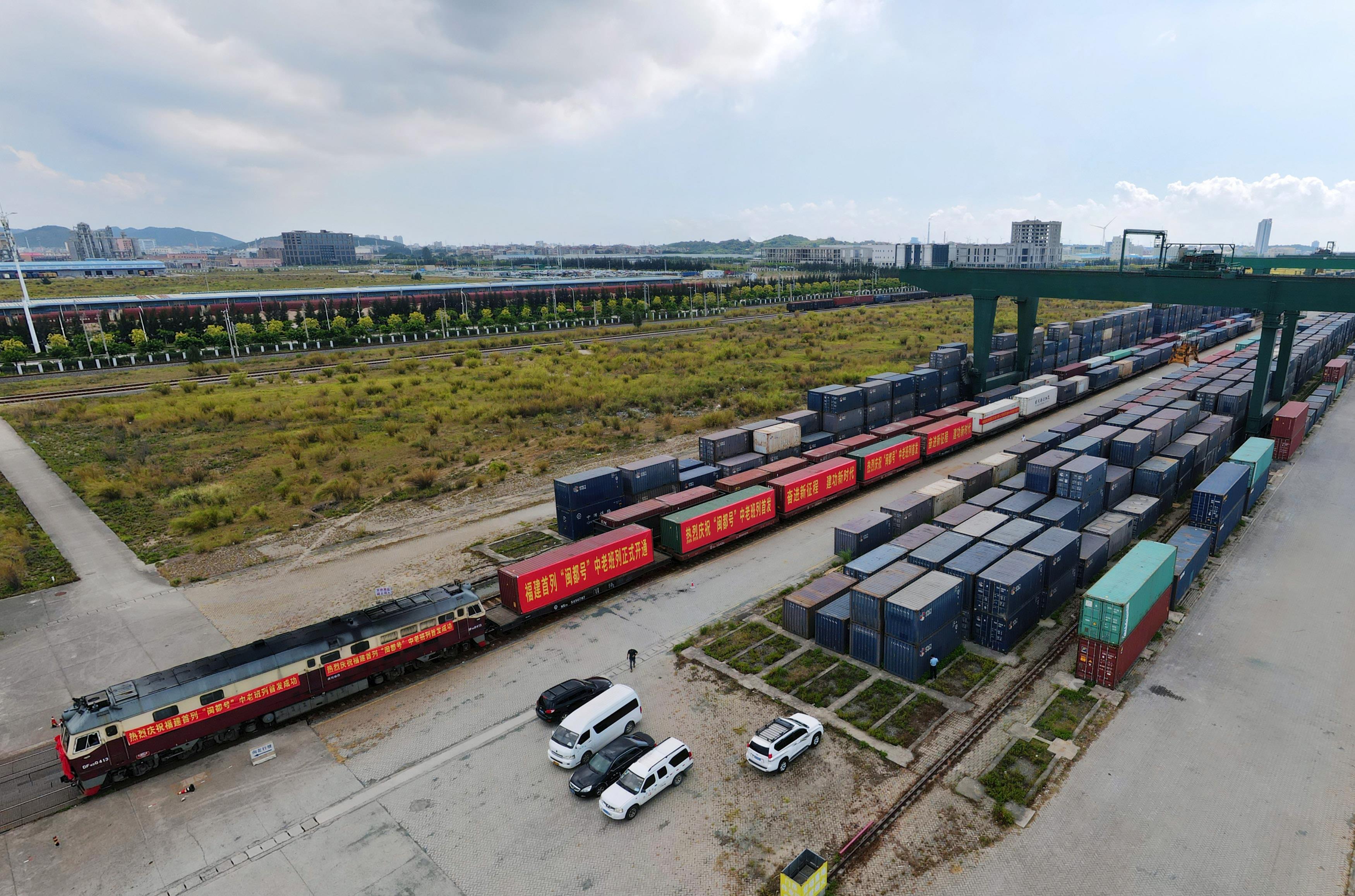 △2022年8月31日,福建首趟中老鐵路國際貨運(yùn)列車從福州江陰港站開出。