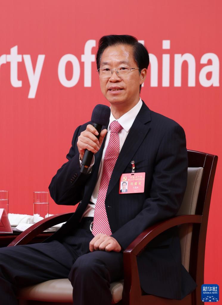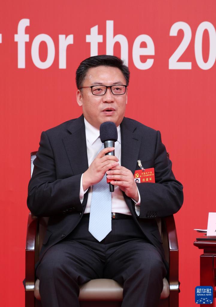 10月18日,中國(guó)共產(chǎn)黨第二十次全國(guó)代表大會(huì)新聞中心舉行集體采訪。黑龍江、上海、江蘇、浙江、安徽、福建、江西代表團(tuán)新聞發(fā)言人出席,介紹代表團(tuán)學(xué)習(xí)討論二十大報(bào)告情況,并回答記者提問。這是浙江省委常委、宣傳部部長(zhǎng)王綱在回答記者提問。新華社記者 張玉薇 攝