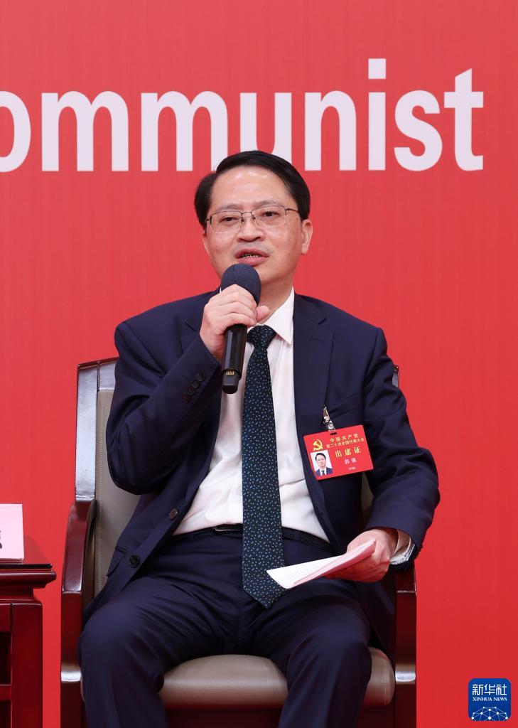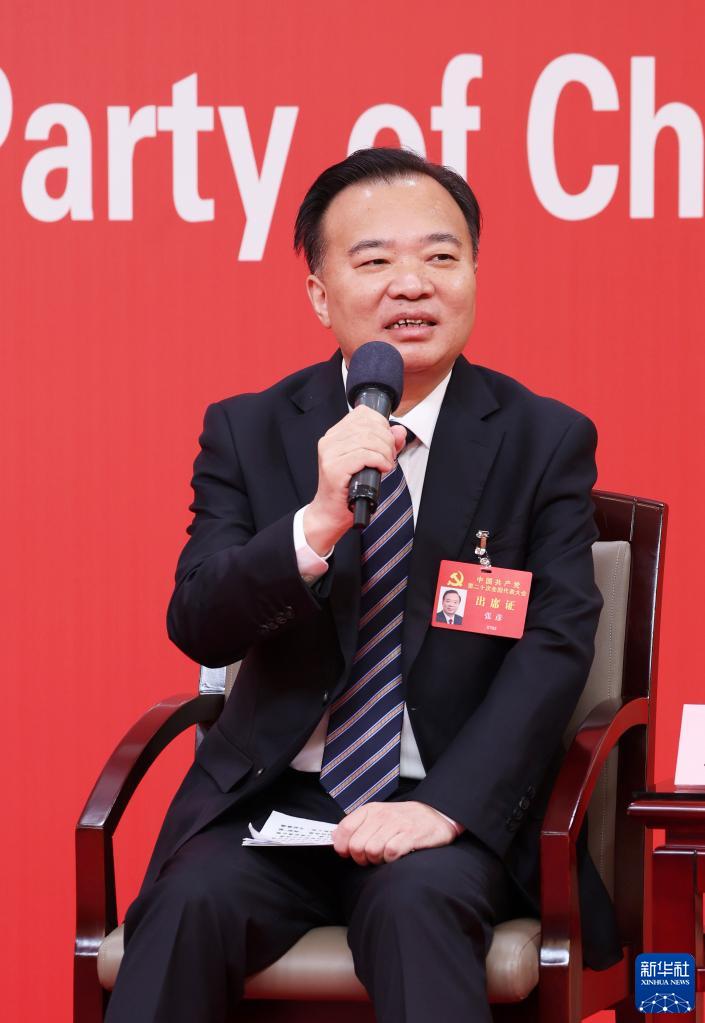 10月18日,中國(guó)共產(chǎn)黨第二十次全國(guó)代表大會(huì)新聞中心舉行集體采訪。黑龍江、上海、江蘇、浙江、安徽、福建、江西代表團(tuán)新聞發(fā)言人出席,介紹代表團(tuán)學(xué)習(xí)討論二十大報(bào)告情況,并回答記者提問。這是福建省委常委、宣傳部部長(zhǎng)張彥在回答記者提問。新華社記者 張玉薇 攝