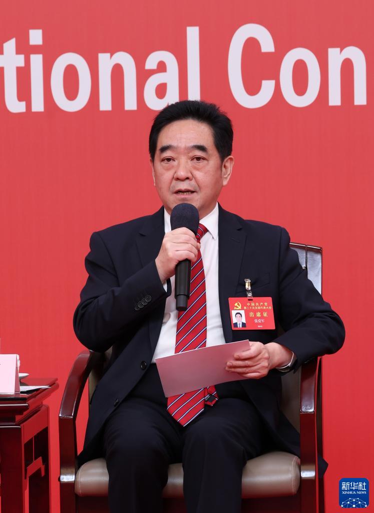10月18日,中國(guó)共產(chǎn)黨第二十次全國(guó)代表大會(huì)新聞中心舉行集體采訪。黑龍江、上海、江蘇、浙江、安徽、福建、江西代表團(tuán)新聞發(fā)言人出席,介紹代表團(tuán)學(xué)習(xí)討論二十大報(bào)告情況,并回答記者提問。這是江蘇省委常委、宣傳部部長(zhǎng)張愛軍在回答記者提問。新華社記者 張玉薇 攝
