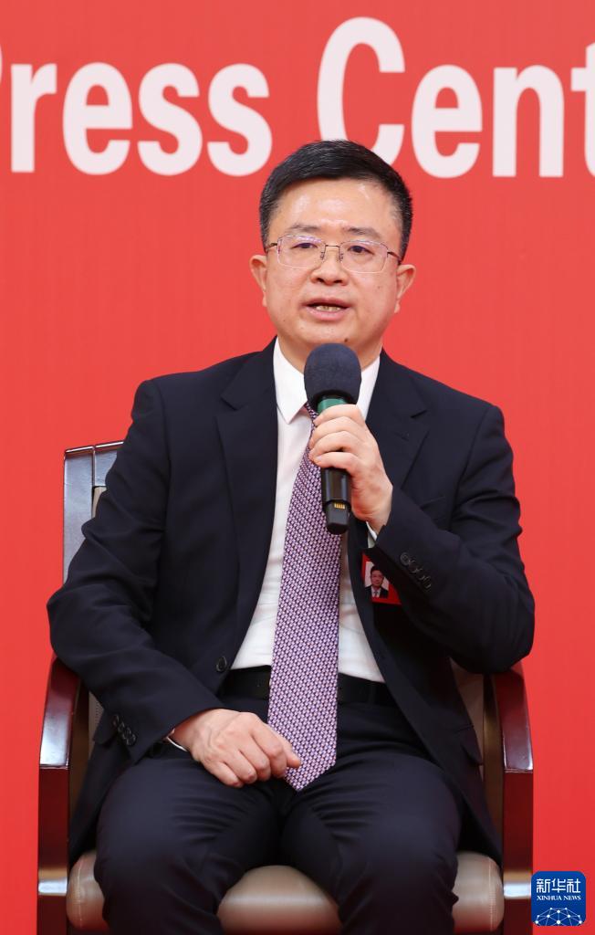 這是陜西省委常委、常務副省長王曉在回答記者提問。新華社記者 張玉薇 攝