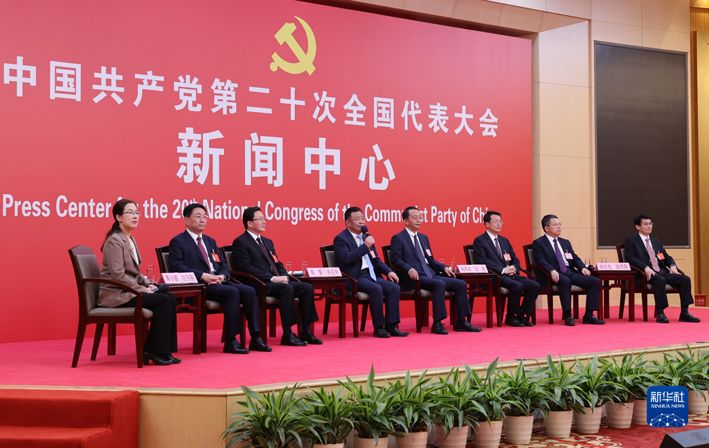 10月19日,中國(guó)共產(chǎn)黨第二十次全國(guó)代表大會(huì)新聞中心舉行集體采訪。山東、河南、湖北、湖南、廣東、廣西、海南代表團(tuán)新聞發(fā)言人出席,介紹代表團(tuán)學(xué)習(xí)討論二十大報(bào)告情況,并回答記者提問(wèn)。新華社記者 陳建力 攝