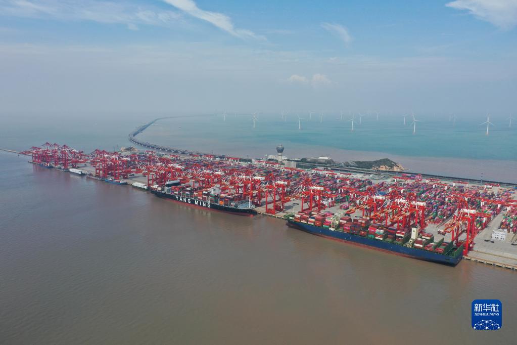 這是2022年9月23日拍攝的上海洋山港集裝箱碼頭(無人機(jī)照片)。新華社記者 丁汀 攝
