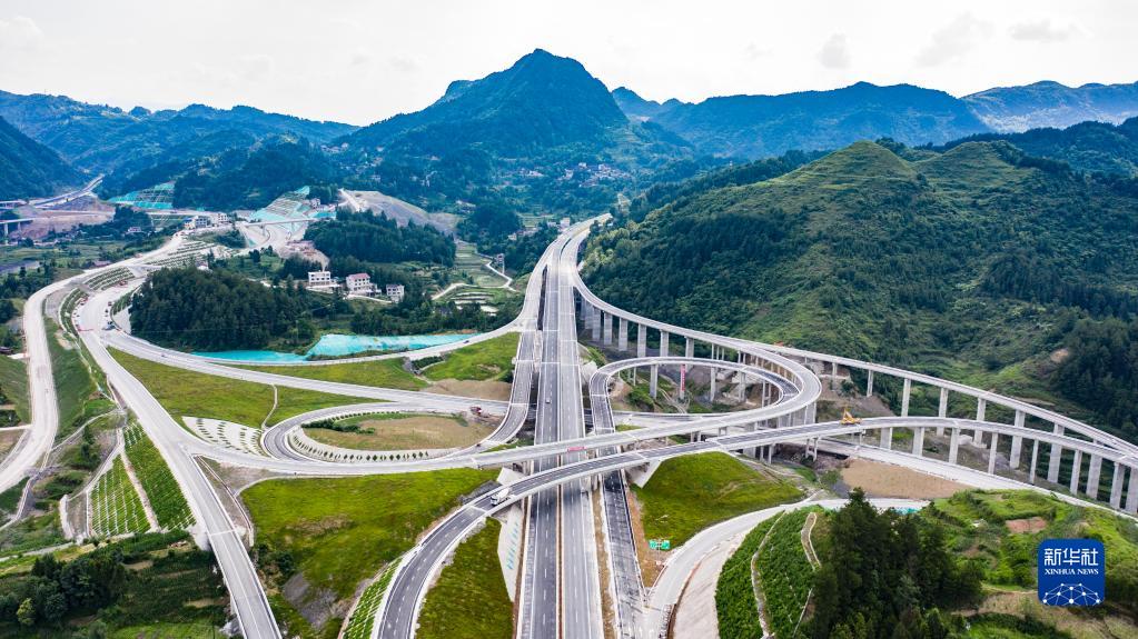 這是貴州石阡至玉屏高速公路花橋互通(2021年6月17日攝,無人機(jī)照片)。新華社記者 陶亮 攝