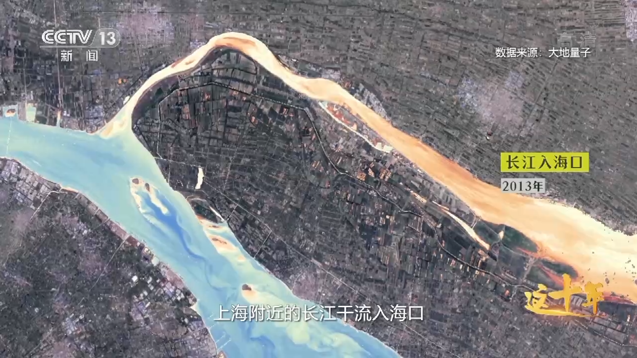 這是2013年6月,上海附近的長江干流入???,水質(zhì)遙感監(jiān)測還原出了水質(zhì)狀況,黃色越重說明污染越重。這是2021年的同一天,同一角度,黃色褪去,水質(zhì)明顯變好了。我們對生態(tài)環(huán)境部發(fā)布的長江工業(yè)污染排放數(shù)據(jù)進(jìn)行分析整理,找出了主要污染物化學(xué)需氧量和氨氮近十年的排放量,形成了這樣的走勢曲線,2015年開始快速下降,如今排放量只有十年前的一成左右。