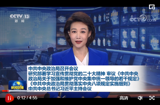 二十屆中共中央政治局10月25日召開會議,研究部署學(xué)習(xí)宣傳貫徹黨的二十大精神,審議《中共中央政治局關(guān)于加強(qiáng)和維護(hù)黨中央集中統(tǒng)一領(lǐng)導(dǎo)的若干規(guī)定》《中共中央政治局貫徹落實中央八項規(guī)定實施細(xì)則》。中共中央總書記習(xí)近平主持會議。