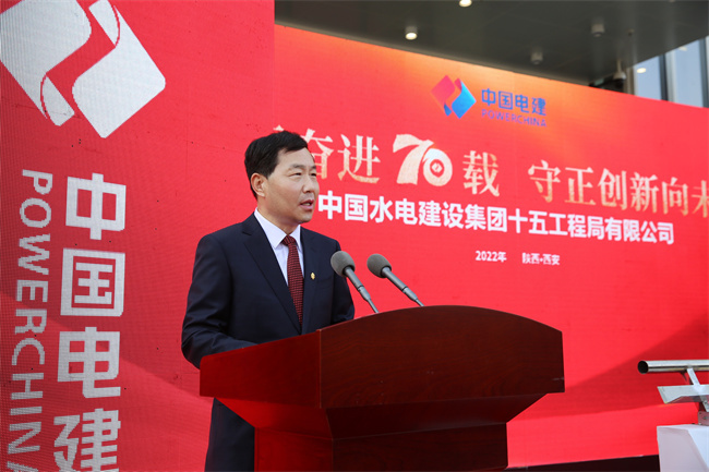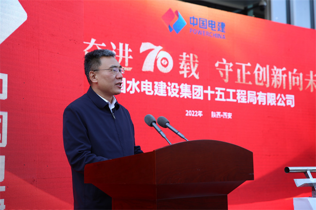 水電十五局黨委書記、董事長梁向峰發(fā)表致辭。他指出,70年來水電十五局緊緊跟隨共和國的腳步,以自帶風(fēng)雷的氣概與共和國一起成長,數(shù)代十五局人歷經(jīng)坎坷卻勇毅向前,在祖國大地建起了一項項雄美的工程!特別是黨的十八大以來的10年,著力推動企業(yè)高質(zhì)量發(fā)展,大力提升內(nèi)生能力,大力擴(kuò)展業(yè)務(wù)布局,在區(qū)域及領(lǐng)域均形成大土木的業(yè)務(wù)結(jié)構(gòu),在產(chǎn)業(yè)鏈上不斷加快投資業(yè)務(wù)、總承包業(yè)務(wù)、融資加總承包業(yè)務(wù)等商業(yè)模式的構(gòu)建,國際業(yè)務(wù)遍布全球多個國家和地區(qū),總量占比全局的四分之一。以延安引黃、灃河治理,易俗社改造、興慶公園改造等項目為代表的新名片使十五局人更加自信。黨的二十大剛剛閉幕,中國的歷史翻開了新的一頁,特殊的日子,迎來建局70周年,同時入駐新的辦公大樓,在習(xí)近平新時代中國特色社會主義思想指引下,十五局人將在新時代的浪潮中倍加努力,再創(chuàng)輝煌!