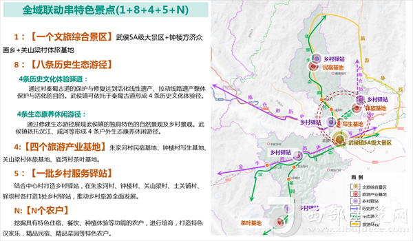 做活三產(chǎn),促進三產(chǎn)融合。采用鎮(zhèn)區(qū)—驛道—基地—驛站—農(nóng)戶體系模式,打造1個綜合景區(qū),8條鄉(xiāng)村驛道,4個旅游產(chǎn)業(yè)基地,5個鄉(xiāng)村驛站,N個特色農(nóng)戶。即通過諸葛亮讀書臺、老縣衙恢復(fù)、諸葛文化旅游度假景區(qū)、綜合文化會展中心建設(shè)項目,豐富景區(qū)旅游產(chǎn)品;依托古道,游步道打造8條鄉(xiāng)村驛道;打造武侯鎮(zhèn)朱家河村民宿基地、武侯鎮(zhèn)鐘樓村寫生基地、武侯鎮(zhèn)關(guān)山梁村體旅基地、武侯鎮(zhèn)廟灣茶葉基地;依托長安畫派領(lǐng)軍人物方濟眾名人效應(yīng),打造鐘樓畫鄉(xiāng)品牌;在中心村結(jié)合村莊公共空間分布情況打造5處鄉(xiāng)村驛站,提供休憩、停車、餐飲等旅游配套服務(wù)。(通訊員:張彬)