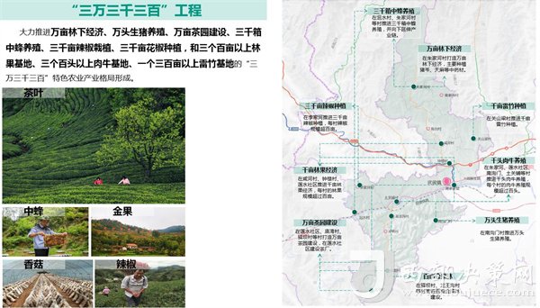 做強一產(chǎn),做優(yōu)特色農(nóng)業(yè)。大力推進“三萬三千三百”(萬畝林下經(jīng)濟、萬頭生豬養(yǎng)殖、萬畝茶園建設(shè);三千箱中蜂養(yǎng)殖、三千畝辣椒栽植、三千畝花椒種植;三個百畝以上林果基地、三個百頭以上肉?;?、一個三百畝以上雷竹基地)工程及“一村一品”工程,形成特色農(nóng)業(yè)產(chǎn)業(yè)格局。