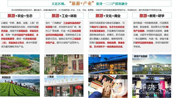 “旅游+”促進一二三產(chǎn)深度融合。立足區(qū)域態(tài)勢,“旅游+農(nóng)業(yè)+生態(tài)”“旅游+工業(yè)+體驗”“旅游+文化+商業(yè)”“旅游+教育+研學(xué)”,充分發(fā)揮旅游業(yè)的拉動力、融合力,促進“旅游+”深度融合。
