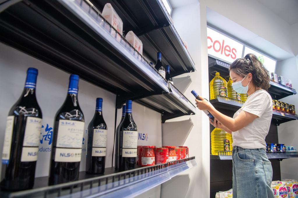 消費(fèi)者在位于重慶解放碑的“陸海新通道國際消費(fèi)中心”選購商品。(2022年5月28日攝)。新華社記者唐奕 攝
