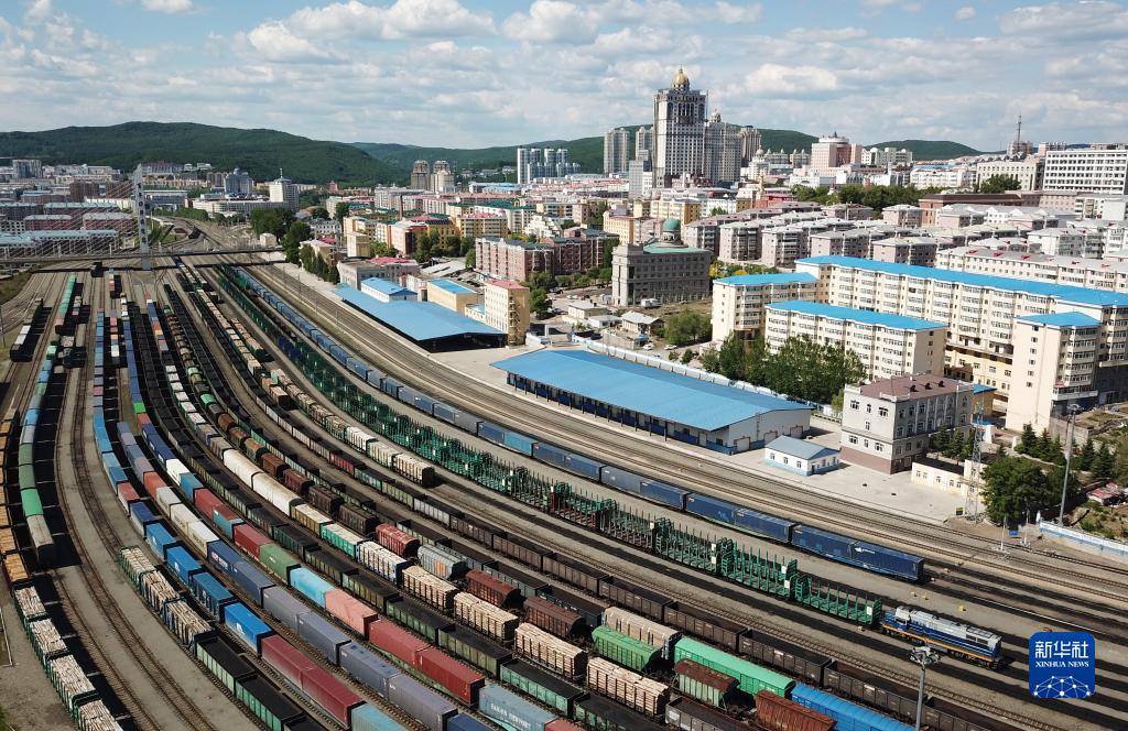 2022年6月8日拍攝的中國(黑龍江)自由貿易試驗區(qū)綏芬河片區(qū)局部(無人機照片)。新華社記者 王建威 攝