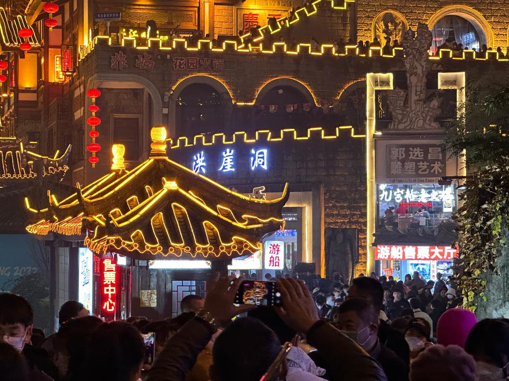 重慶洪崖洞民俗風(fēng)貌區(qū)重現(xiàn)歡鬧,“店鋪營(yíng)業(yè)額同比增長(zhǎng)20%。”一家火鍋店店主陳大江說(shuō);重慶老街山城巷,紅燈籠照亮青石與黛瓦,人們?cè)诖蚩ǖ嘏抨?duì)拍照。“這里古色古香,又融入現(xiàn)代時(shí)尚元素,很有氛圍!”游客秦藝說(shuō)。