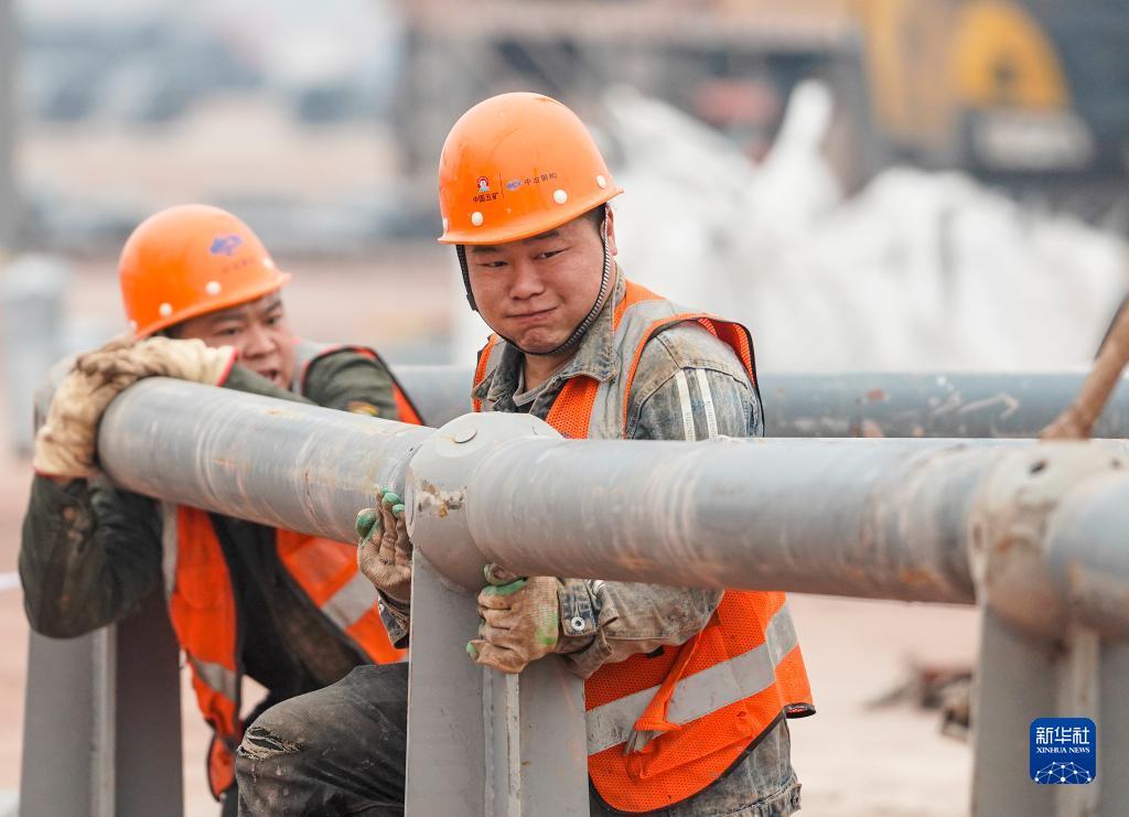 工人在重慶兩江新區(qū)新能源汽車產(chǎn)業(yè)園基礎設施配套項目現(xiàn)場進行鋼結(jié)構(gòu)材料拼裝作業(yè)(1月23日攝)。新華社記者 劉潺 攝
