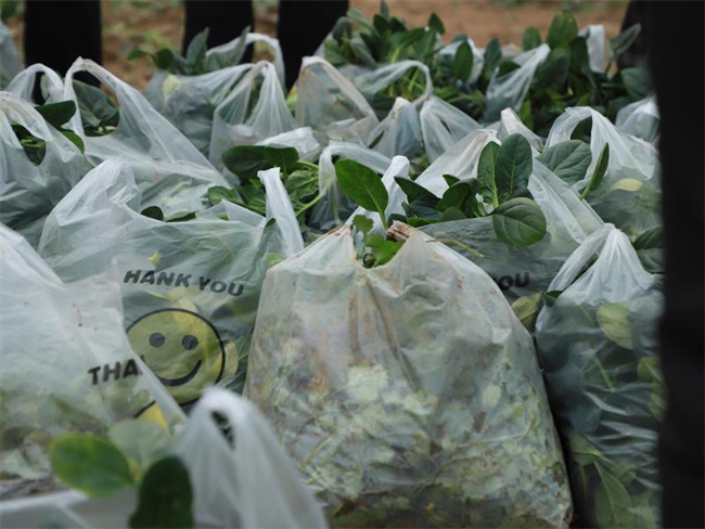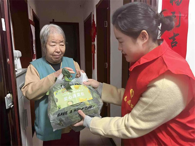 志愿者們來到田間助農(nóng)采摘菠菜和香菜,大家齊心協(xié)力、干勁十足,不一會兒一批新鮮蔬菜便裝袋完成。隨后志愿者們將“愛心蔬菜包”送往翠華南路社區(qū)困難老人手中,以實際行動傳遞愛心,踐行央企責(zé)任。