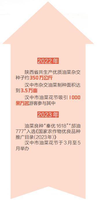 陜西是雜交油菜種業(yè)強(qiáng)省,雜交油菜育種研究和產(chǎn)業(yè)化開(kāi)發(fā)一直走在全國(guó)前列。2022年,陜西省制定《油菜產(chǎn)業(yè)綠色革命科技三年行動(dòng)實(shí)施方案》,取得明顯成效。陜西省去年全年共生產(chǎn)優(yōu)質(zhì)油菜雜交種子約350萬(wàn)公斤。勉縣、城固縣、洋縣入選全國(guó)油菜產(chǎn)業(yè)綠色革命科技示范縣;陜西農(nóng)業(yè)科研單位培育的油菜良種“秦優(yōu)1618”“邡油777”入選2022年國(guó)家糧油生產(chǎn)主導(dǎo)品種和《國(guó)家農(nóng)作物優(yōu)良品種推廣目錄(2023年)》;漢中市農(nóng)業(yè)農(nóng)村局啟動(dòng)糧油“百千萬(wàn)”豐產(chǎn)示范工程,在全市11個(gè)縣(區(qū))建立油菜優(yōu)良品種和綠色高產(chǎn)高效生產(chǎn)技術(shù)百畝示范點(diǎn)56個(gè)8100畝、千畝示范片23個(gè)2.9萬(wàn)畝、萬(wàn)畝示范帶9個(gè)10.5萬(wàn)畝;漢中市南鄭區(qū)和勉縣被農(nóng)業(yè)農(nóng)村部認(rèn)定為國(guó)家級(jí)油菜制種大縣。漢中市委、市政府提出“最強(qiáng)產(chǎn)業(yè)、最優(yōu)種業(yè)、最美花海”的發(fā)展戰(zhàn)略,以“花”為媒,將漢中市油菜花節(jié)打造成推動(dòng)鄉(xiāng)村振興和發(fā)展文化旅游的重要載體。2022年,1000余萬(wàn)名游客前來(lái)觀光旅游或參與線(xiàn)上活動(dòng)。“油菜經(jīng)濟(jì)”堪稱(chēng)陜西的一張金色名片。