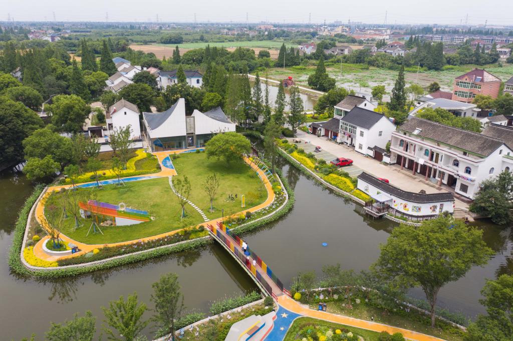 6月15日,空中俯瞰嘉興市秀洲區(qū)新塍鎮(zhèn)洛東村(無人機照片)。新華社記者 徐昱 攝