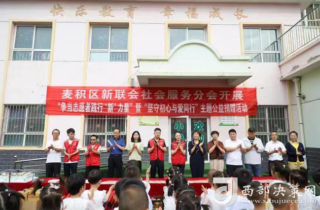 西部決策網(wǎng)訊(記者帥華鋒 安國強(qiáng))七月的愛心洶涌澎湃,夏日的陽光溫暖燦爛。7月6日,天水麥積區(qū)委統(tǒng)戰(zhàn)部聯(lián)合區(qū)新聯(lián)會社會服務(wù)分會冉學(xué)芹和劉濤,攜手陽光幼教·愛心火炬公益團(tuán)隊、天水龍城救援志愿服務(wù)隊和華蒙星少兒籃球俱樂部在馬跑泉中心幼兒園大溝分園開展“爭當(dāng)志愿者踐行‘新’力量”暨“堅守初心與愛同行”主題公益捐贈助學(xué)活動。麥積區(qū)委統(tǒng)戰(zhàn)部、團(tuán)區(qū)委、馬跑泉鎮(zhèn)、馬跑泉中心學(xué)校等分管負(fù)責(zé)同志應(yīng)邀參加活動。