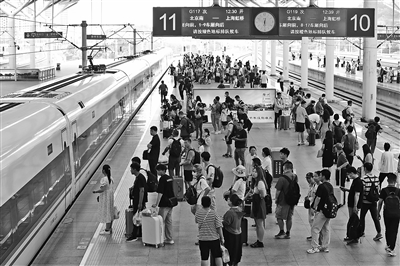 圖為當(dāng)日旅客在徐州東站站臺候車。新華社記者 毛俊 攝
