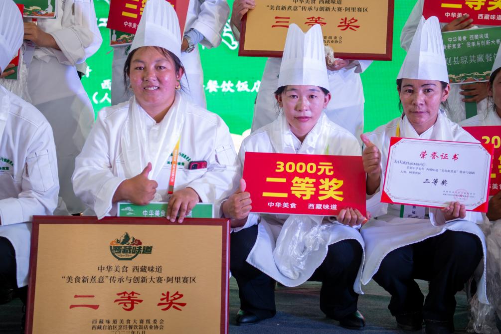 拿到獎(jiǎng)牌的“那普社區(qū)農(nóng)牧民代表隊(duì)”十分開心。她們說,有一個(gè)夢(mèng)想,就是爭(zhēng)取開一個(gè)大飯店,讓更多的人吃上她們用心制作的飯菜。