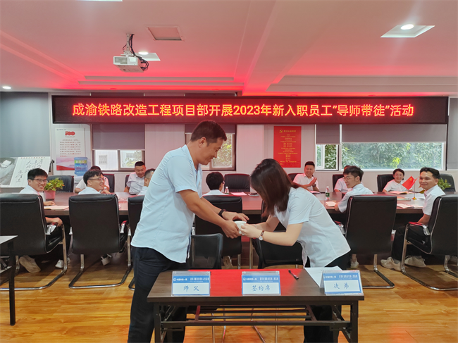 8月25日下午,中鐵一局七公司成渝項目部舉行導師帶徒結(jié)對儀式,項目領(lǐng)導班子、各部室負責人及主要管理人員出席活動(重點對象為新入職大學生),支部書記王濤主持儀式。