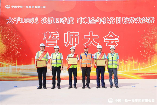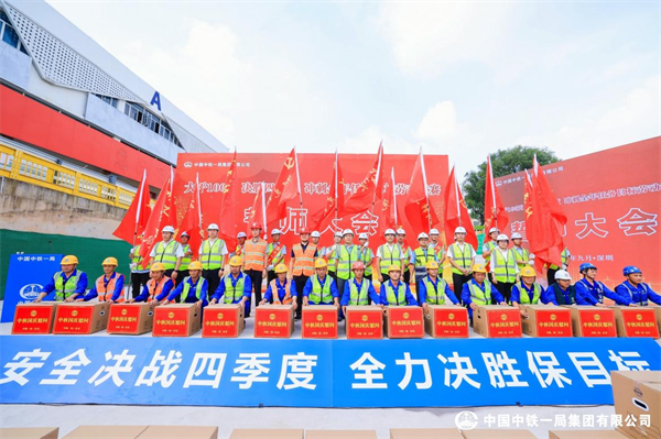 儀式由中鐵一局一公司安全總監(jiān)昝永奇主持。中鐵一局一公司副總經(jīng)理王發(fā)智宣讀了《大干100天 決勝四季度 沖刺全年任務目標勞動競賽方案》。深大城際、深圳地鐵11號線、京港澳高速項目負責人分別作表態(tài)發(fā)言。