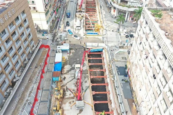 該站位于深圳福田鬧市區(qū),地下管線眾多復雜,管線保護壓力大;施工場地狹小,施工車輛作業(yè)受限;周邊環(huán)境復雜,需多次倒邊,嚴重制約著施工進度。項目始終堅持策劃先行,方案創(chuàng)效的管理思路,采取加強工序銜接,優(yōu)化施工過程;增加施工機械、人員等投入,形成多個作業(yè)面施工;調整作息時間,管理人員與施工班組同步上下班等多種舉措,克服各種施工限制,安全有力推進施工進度。后續(xù)施工中,項目部以“大干一百天 決勝四季度 沖刺全年任務目標”勞動競賽為契機,現(xiàn)場施工“全面開花”,緊盯節(jié)點目標,搶抓形象進度,盯牢安全質量,全力攻堅年度目標。(文/張倩)