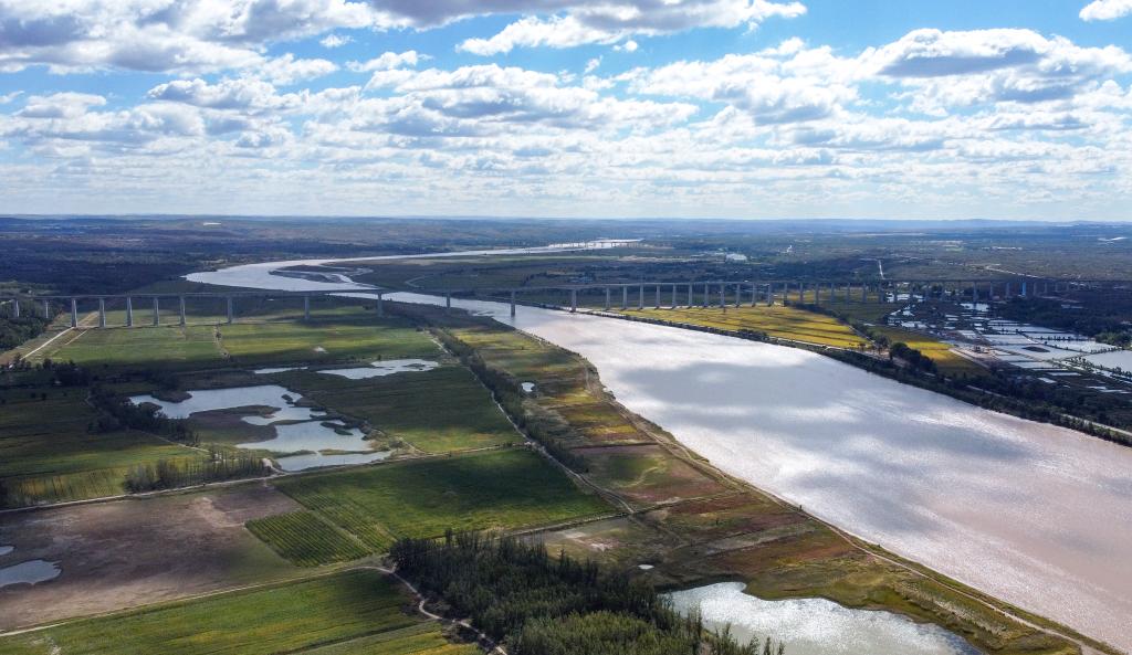 這是2022年9月22日在呼和浩特市托克托縣拍攝的黃河風光(無人機照片)。新華社記者 貝赫 攝