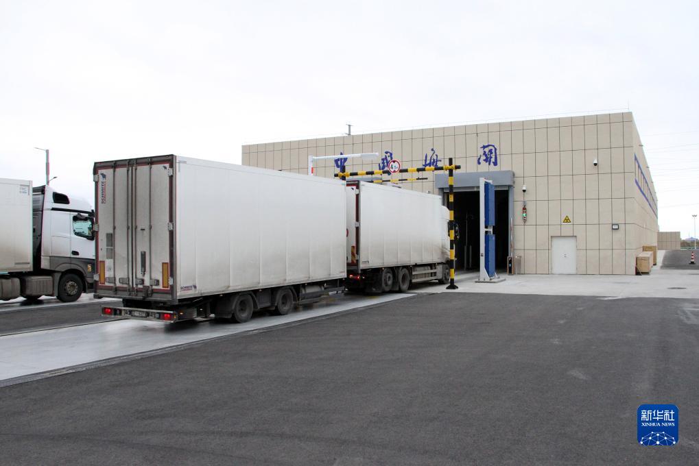 11月5日,入境貨車在阿拉山口公路口岸停車場等待檢查結果。新華社記者 趙晨捷 攝