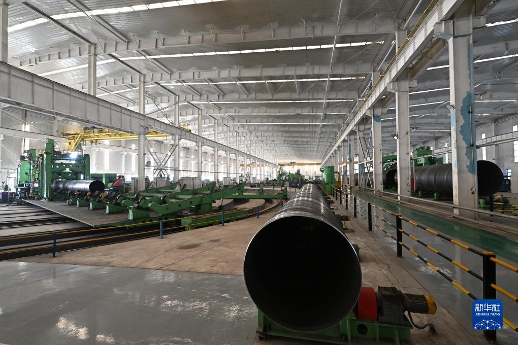 這是阿拉山口新博油氣管道制造有限責任公司的生產(chǎn)車間(11月4日攝)。該公司主營高端焊管的生產(chǎn)、保溫、防腐等業(yè)務。新華社記者 李鑫 攝